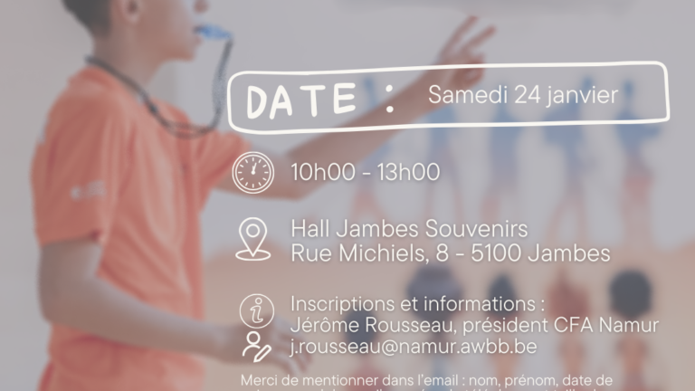 Le programme des demi-finales namuroises est connu 14/01/2026 Actualités Le programme des demi-finales namuroises est encodé sur la plateforme et donc disponible sur l’application AWBB.