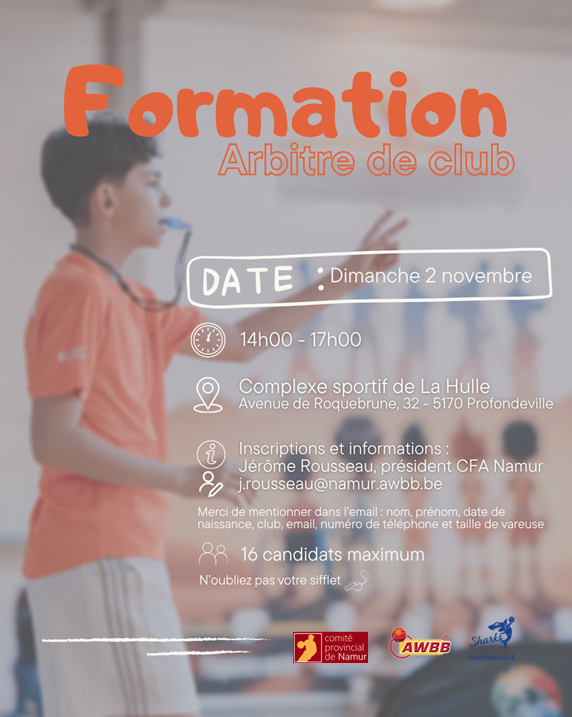 Inscriptions et informations : Jérôme Rousseau, président de la CFA Namur, j.rousseau@namur.awbb.be