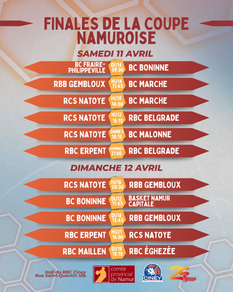 Le programme de nos finales namuroises est connu