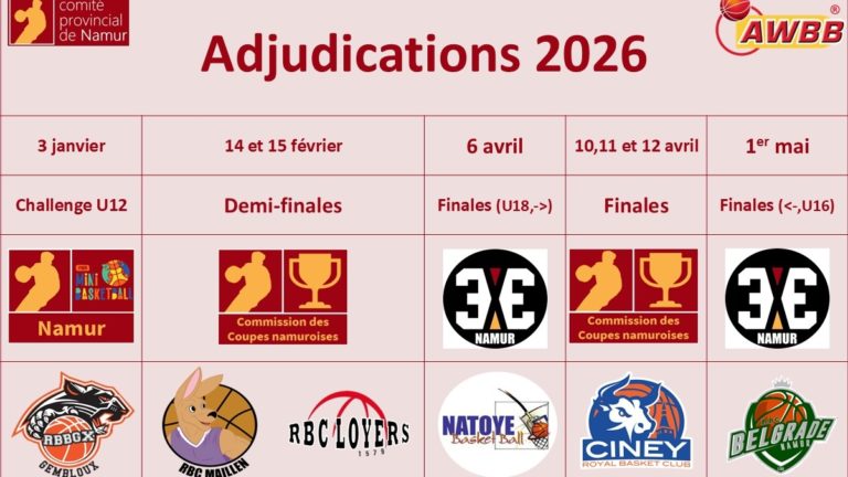2Nov Formation d’arbitre de club Actualités Évènement Inscriptions et informations : Jérôme Rousseau, président de la CFA Namur, j.rousseau@namur.awbb.be Merci de mentionner dans [...]